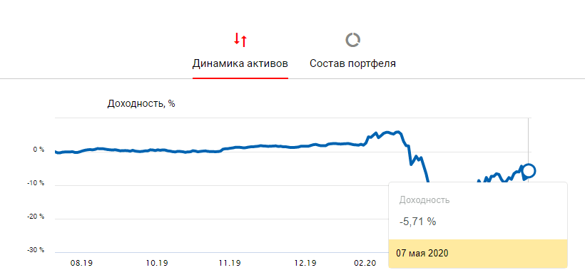 Потом началась эпидемия и доход упал до -20% (минус двадцать процентов). Т.е. вложили 20к, стало 16к. Потеряли 4к.