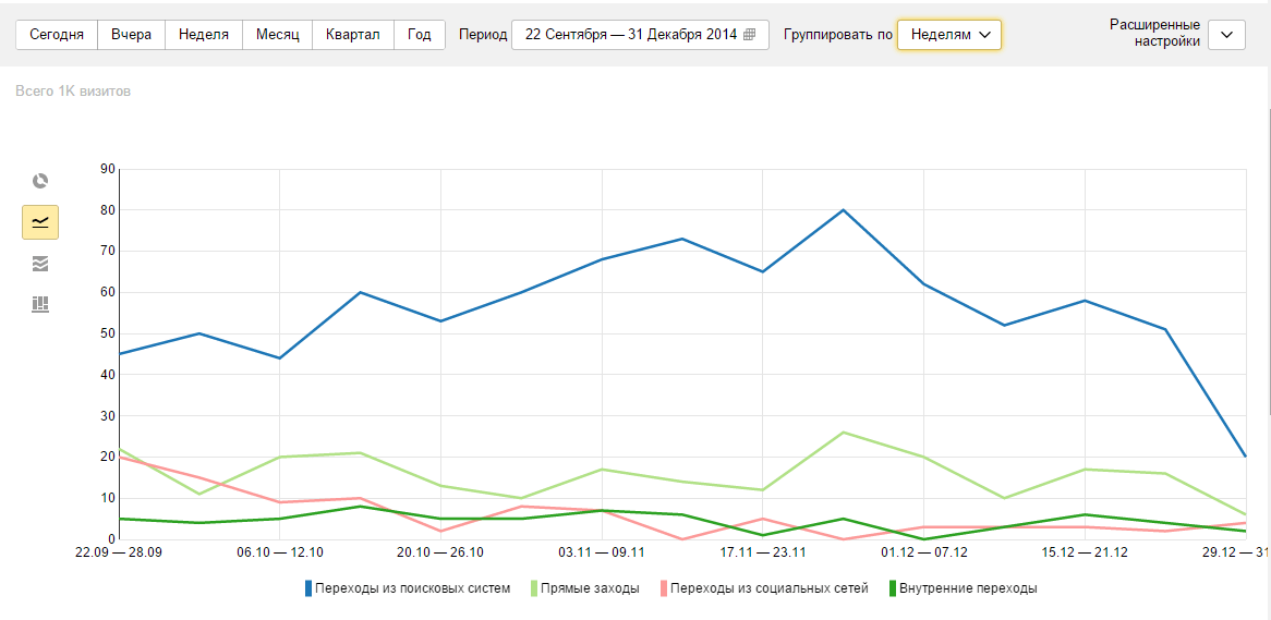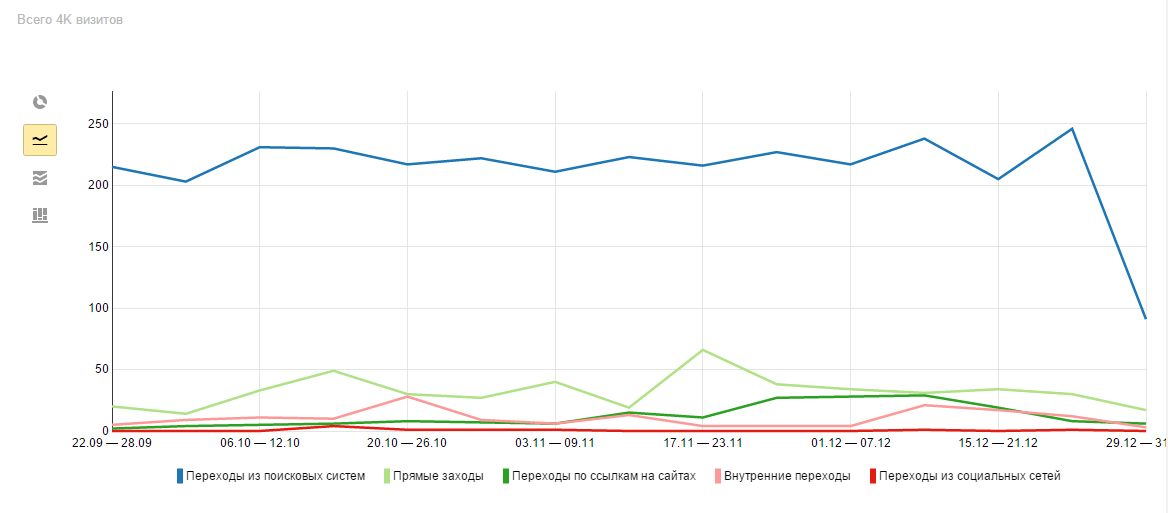 В декабре я почти не писал статьи для этого сайта. На графиках посещаемость группирована по месяцам и неделям.