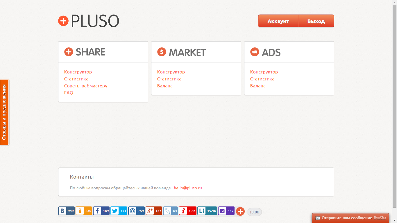 Сегодня поговорим про интернет-сервис share-кнопок Pluso. В начале регистрируемся на сайте.