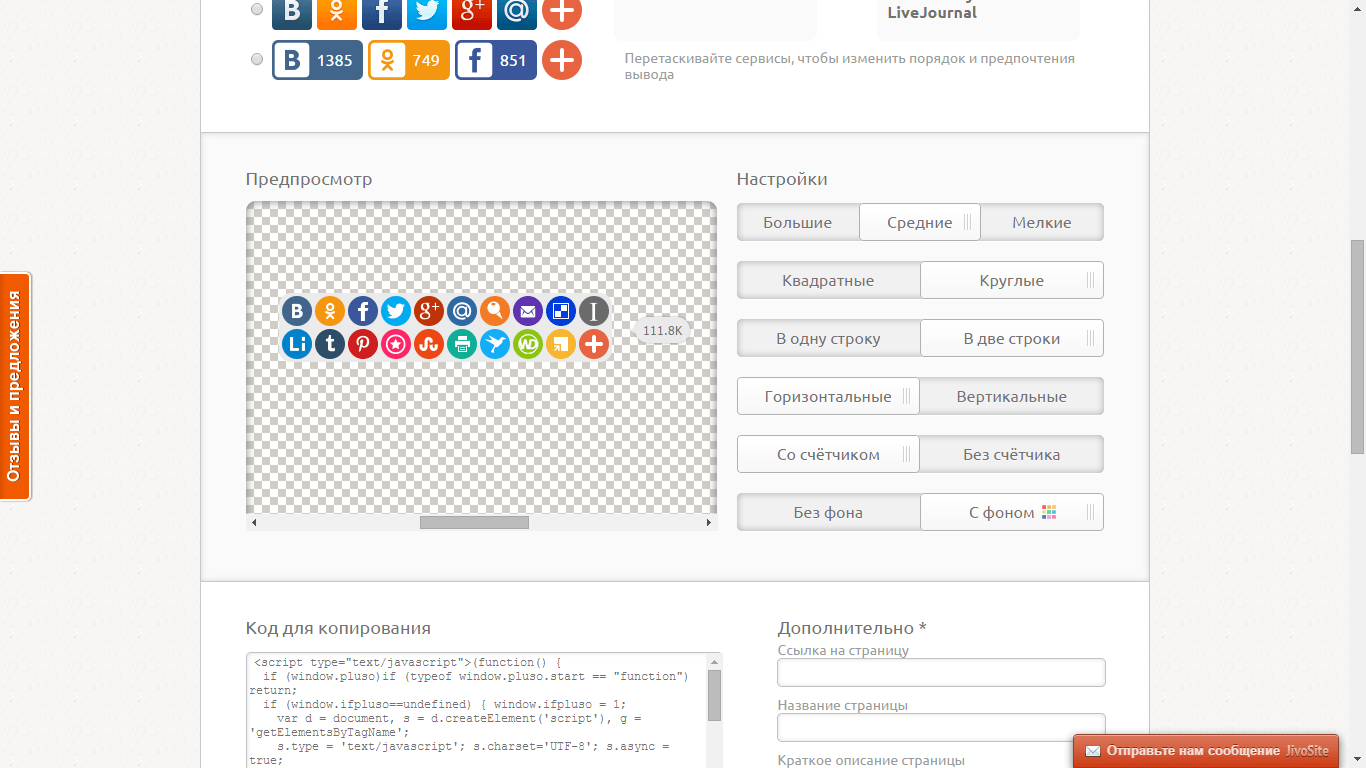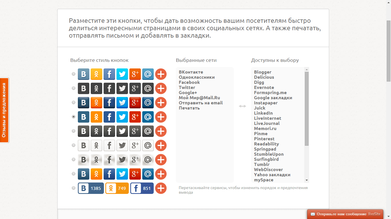 Заходи в конструктор. В нем есть корок 40, из них 3 спецкнопки. В конструкторе выбираем нужные соцсети.