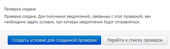После этого нажмите на кнопку «Создать». Далее нужно указать условия, при которых вам будет отправляться удоведомление о результатах проверки. По завершении создания проверки на экране появится следующее окно:
