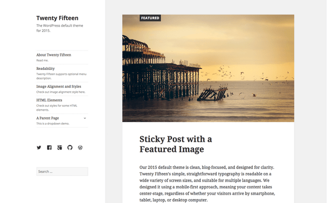Новая тема называется Twenty Fifteen. Ориентирована на блоги и в ней поддерживается многие языки, благодаря использования шрифтов Google Noto. Простые шрифты легко читаются на экране любого размера. При этом дизайн полностью адаптивный и позволяет им пользоваться почти на любом современном устройстве. Только не понравилось, что миниатюры маленькие.