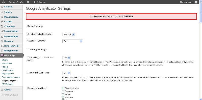 Теперь вам надо перейти к настройкам. Вначале включаем плагин и проверяем, что выбрано правильное соответствующее значение UID в рамках выпадающего меню. А остальное настраиваете по личным потребностям и вкусу.