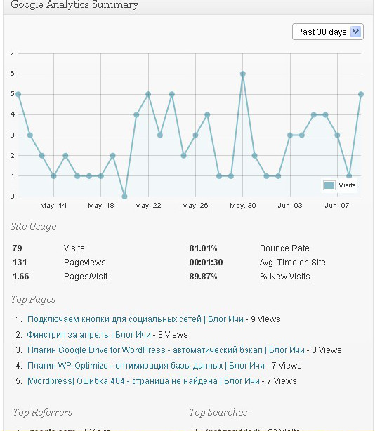 При использовании сайта на основе WordPress хочется просматривать статистику в админке. Если Вы пользуетесь сервисом Google Analytics, то сделать это не сложно. Сейчас попробую объяснить.